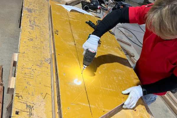加工図をもとにベニヤ板・角材を切断して、型枠を製作。